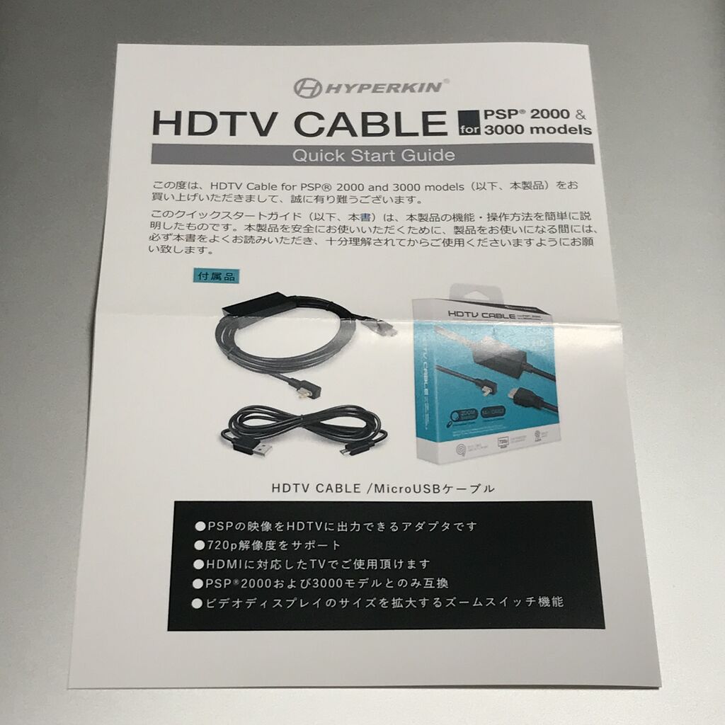 注意は、PSP本体は2000番と3000番にしか対応していないこと、PSP本体の画面ボタンをすっごく長押ししないといけないことです。市販の安いケーブルでも、メニュー画面は出力できますが、ゲーム画面がちゃんと出てくるのはD端子のケーブルか、このHYPERKINのケーブルのような変換機能をもっているやつくらいです。Amazonのレビューでは、熱で壊れることもあると書いてあるので、暖かい季節には排熱も気にしたほうがいいかもですね。間違っても購入時のビニールを付けたままプレイなんてしないようにしましょう!