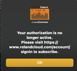 SOUND Canas VAは認証されていません、的なエラーメッセージ。もちろんRoland Cloud Managerは最新版にしてます。買い切り版のユーザーだっていうのに・・・。